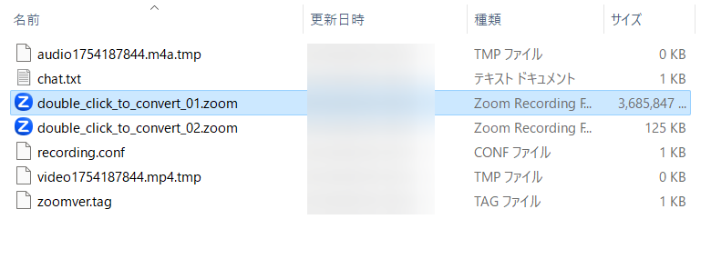 こんな感じで、.zoomファイルが存在した状態となっています。